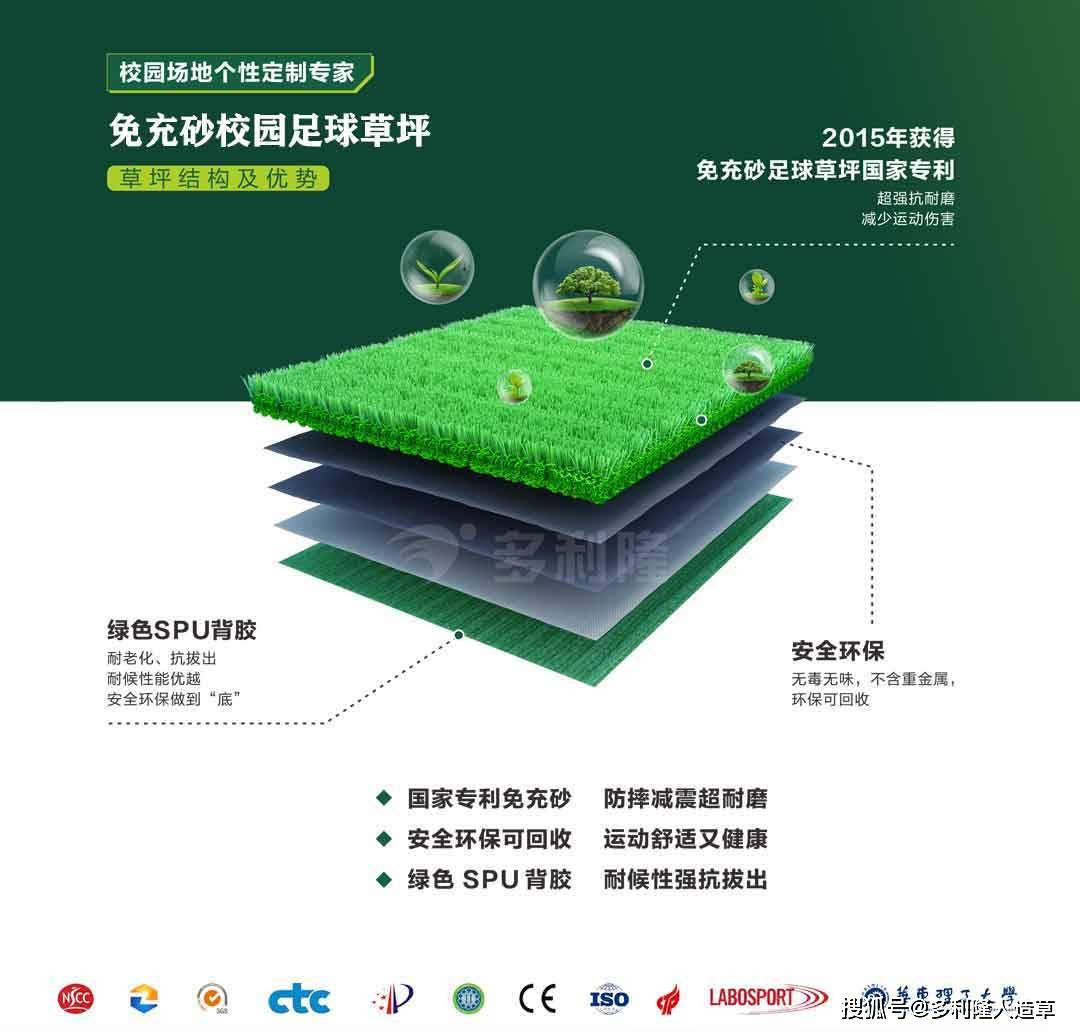 多利隆丨免充砂足球草對比充砂型足球草,其性能和指標更加符合學生運動需求,而且具有高環(huán)保、造價低、施工短、維護方便等優(yōu)點!