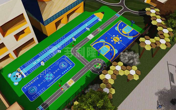 小熊鉛筆跑道的設(shè)計(jì)重點(diǎn)凸顯對(duì)孩子們身體健康及體育教育的重視。